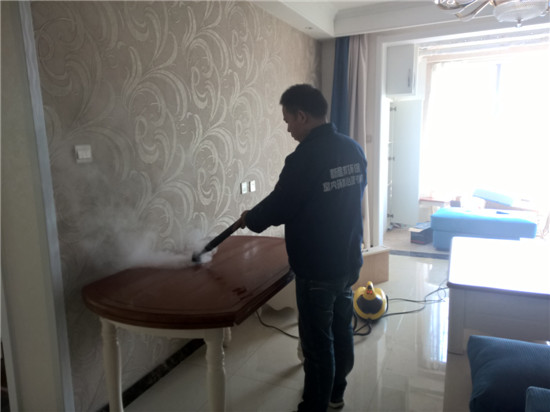 第一步,采用高溫熏蒸熱解方法,對新房異味釋放源進行處理,利用高溫蒸汽接觸異味釋放源表面,讓蒸汽加速異味分子快速揮發釋放,降解大部分異味。