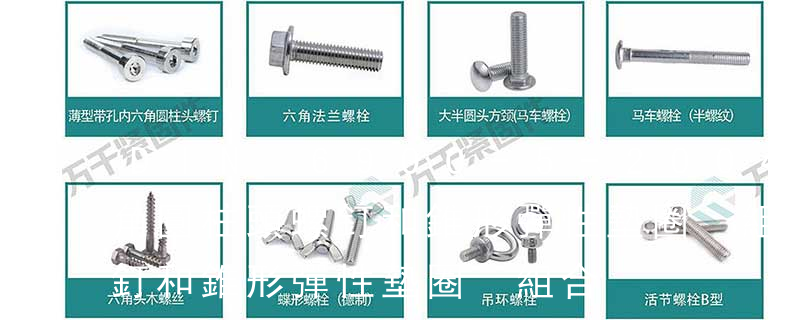 二、分類不同 1、螺絲 主要分類包括普通螺絲、機螺絲、自攻螺絲和膨脹螺絲三種。2、螺栓 按連接的受力方式分:分普通的和有鉸制孔用的。按頭部形狀分:有六角頭的,圓頭的,方形頭的,沉頭的等等。其中六角頭是最常用的 9074.21—1988十字槽凹穴六角頭自攻螺釘和大墊圈組合件GB/T 9074.26—1988組合件用彈簧墊圈GB/T 9074.27—1988組合件用外鋸齒鎖緊墊圈GB/T 9074.28—1988組合件用錐形鎖緊墊圈